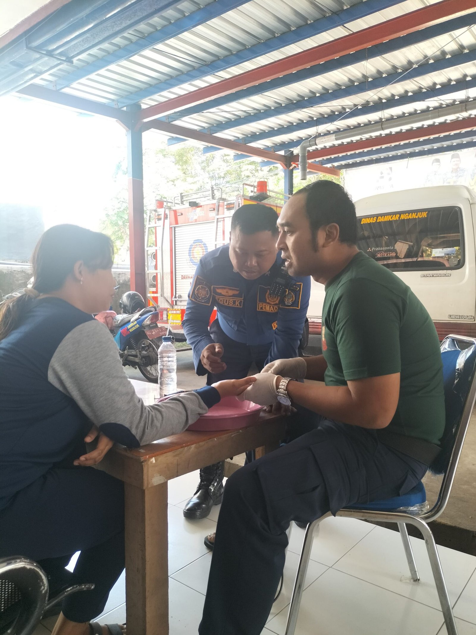Saat petugas Damkarmat Nganjuk melepas cincin yang bikin bengkak jari Wiwik (istimewa)