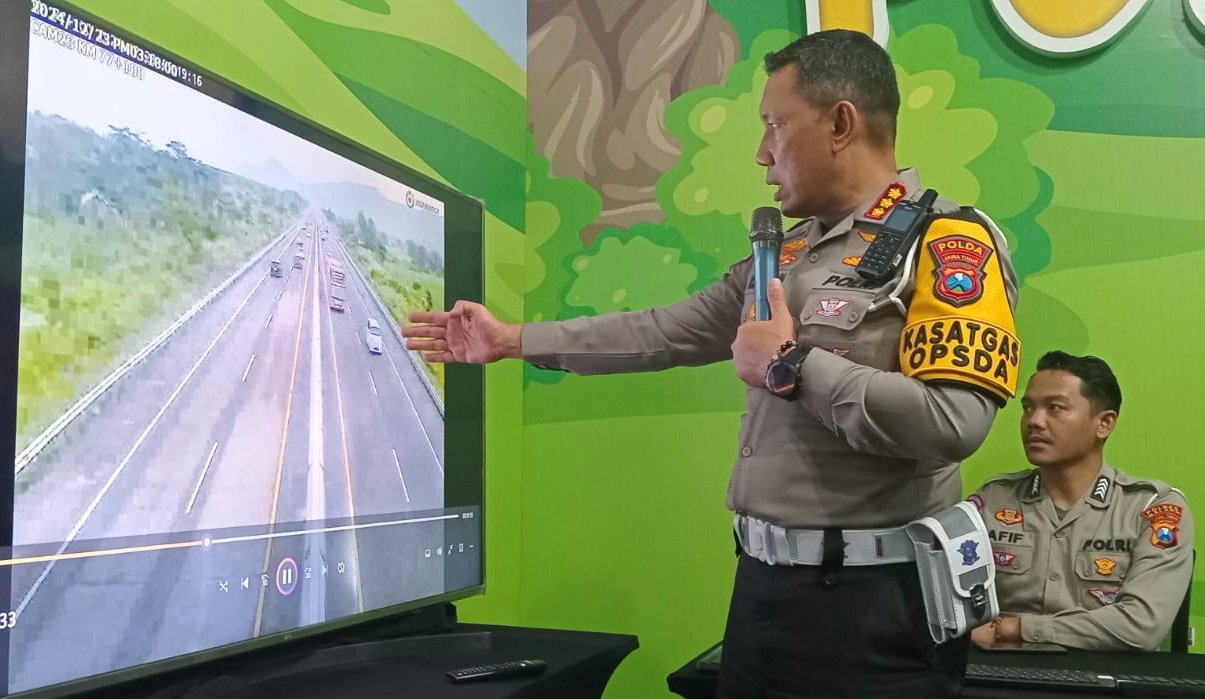 Dirlantas Polda Jatim Kombes Pol Komarudin saat menerangkan terjadinya kecelakaan di layar CCTV di Pos Polisi Karanglo, Kabupaten Malang. (Foto: P. Priyono)