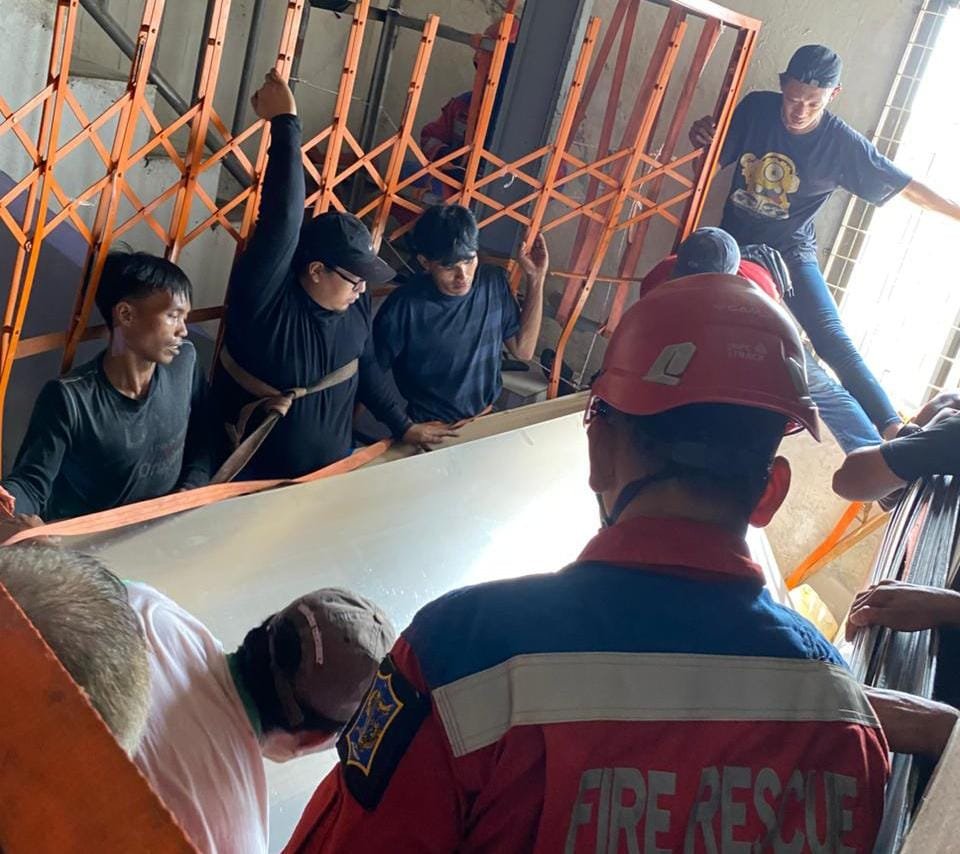 Setibanya di tempat kejadian, petugas mendapati para korban dalam kondisi terjepit material besi berat di ketinggian. Posisi mereka yang berada di lantai tiga membuat proses evakuasi penuh risiko. Salah langkah sedikit saja, korban bisa terjatuh.
