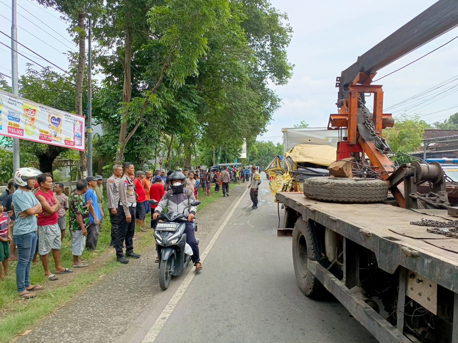 “Mobil boks yang dari utara keluar jalurnya sehingga berbenturan dengan truk yang dari arah selatan,” katanya.