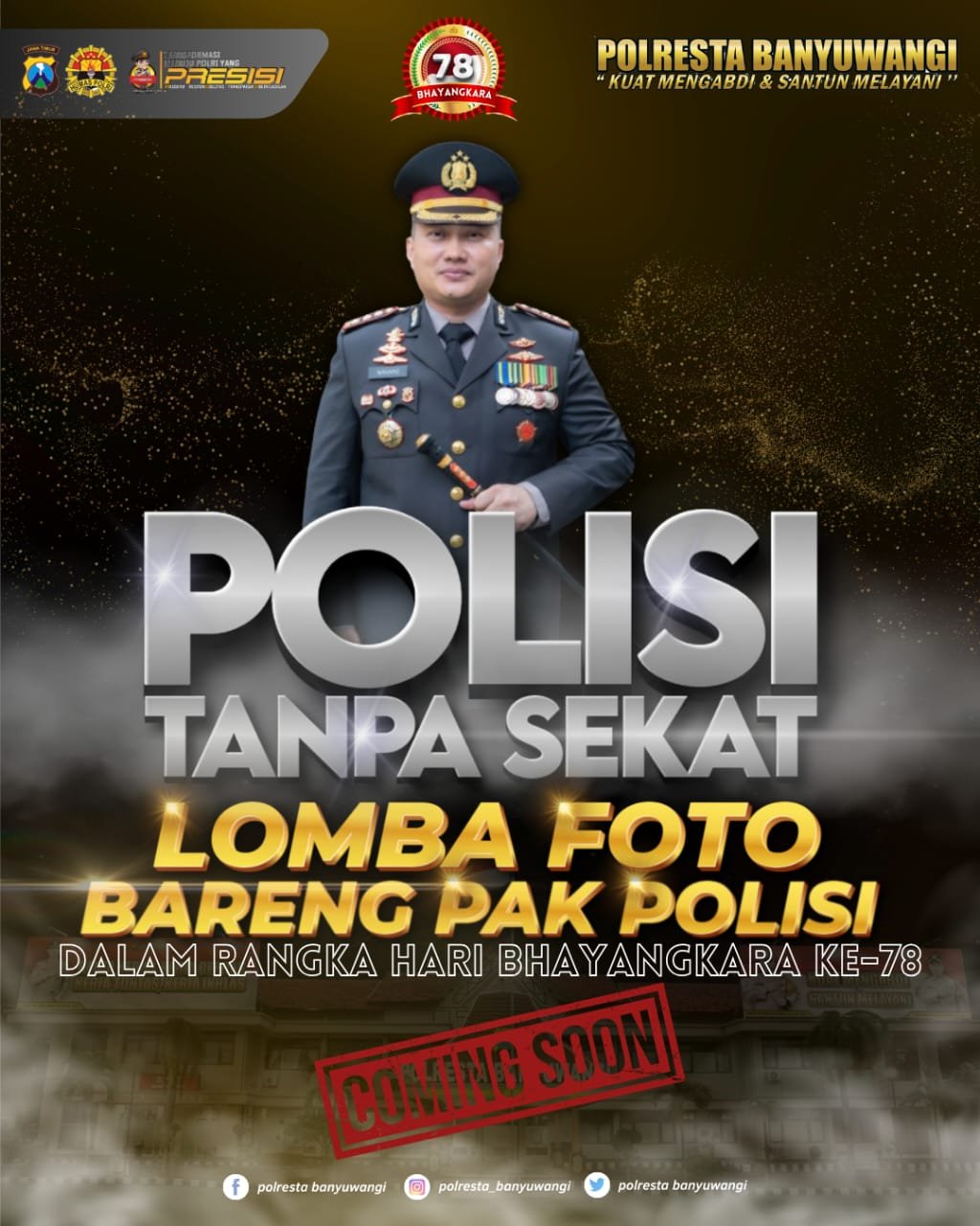 KabarBaik.co – Dalam rangka memperingati Hari Bhayangkara ke-78 pada tahun 2024, Polresta Banyuwangi menyelenggarakan Lomba Foto Bareng Polisi dengan tema “Polisi Tanpa Sekat”. Acara ini diadakan untuk mempererat hubungan antara polisi dan masyarakat melalui momen-momen kebersamaan yang ditangkap dalam foto.
