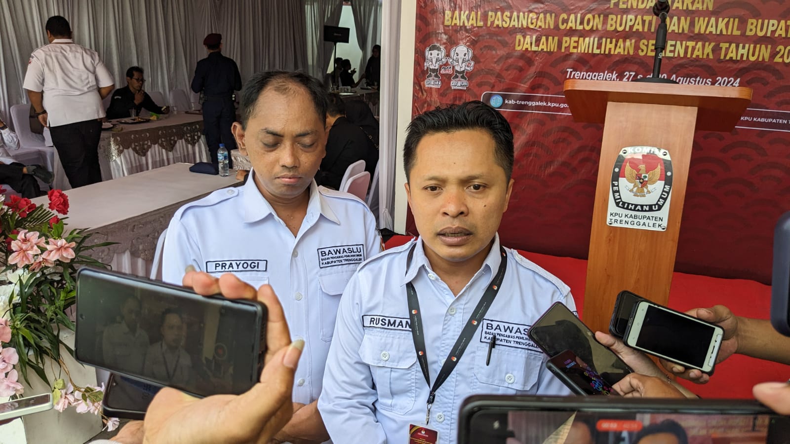 Ketua Bawaslu Trenggalek Rusman Nuryadin saat diwawancarai oleh media. (Foto: Herlambang)