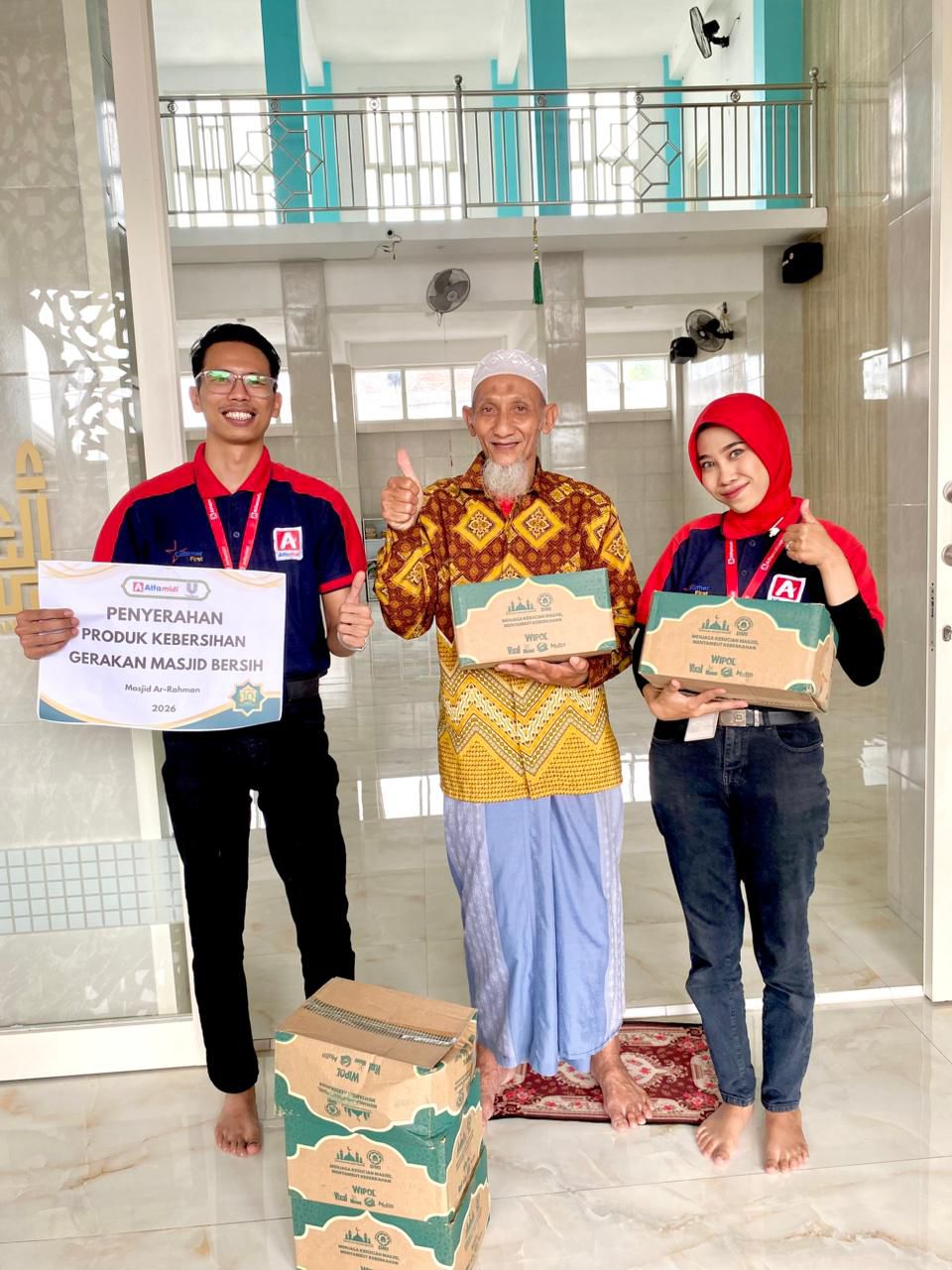 Selain bantuan tenaga, Alfamidi bersama Unilever juga menyalurkan berbagai perlengkapan kebersihan dan produk pembersih untuk mendukung perawatan masjid secara berkelanjutan.