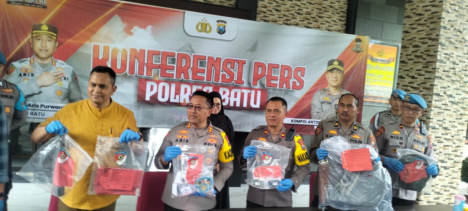 Polres Batu mengungkap kasus pemukulan yang dilakukan sopir truk kepada pengendara di Pujon, Kabupaten Malang. (Foto: P. Priyono)