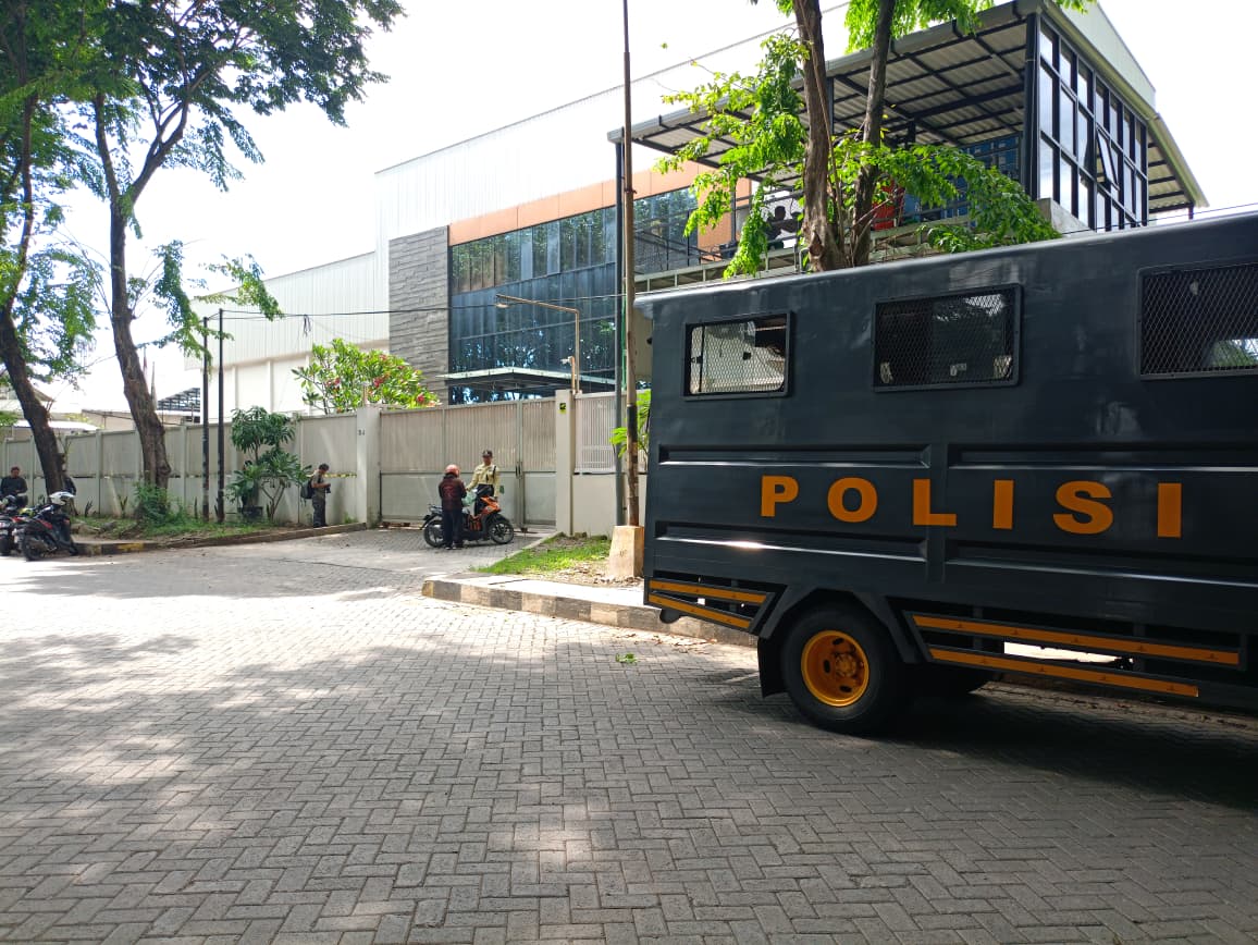 Sekitar 10 orang anggota polisi terlihat masuk ke dalam area pabrik saat proses penggeledahan berlangsung. Kehadiran petugas sempat menarik perhatian para pekerja di sekitar lokasi.