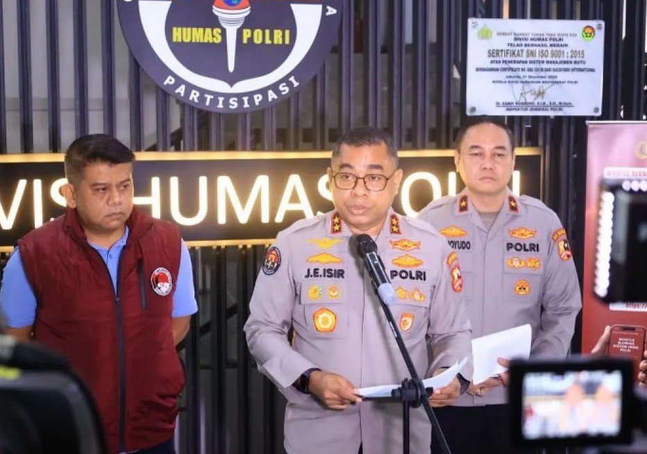 Kepala Divisi Humas Polri, Inspektur Jenderal Polisi Johnny Eddizon Isir, menyampaikan keterangan pers di Jakarta, Minggu (15/2/2026) malam. ANTARA/HO-Divisi Humas Polri