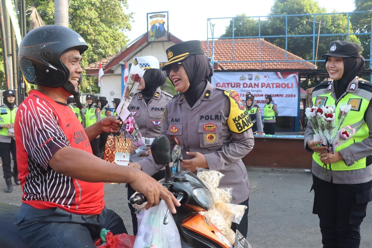 Untuk hari ini, seluruh Polwan Polres Pasuruan melakukan kegiatan pengaturan lalu lintas di kawasan Ibu Kota Kabupaten Pasuruan. Lalu dilanjutkan dengan pembagian bingkisan dan bunga kepada pengguna jalan yang tertib berlalu lintas.