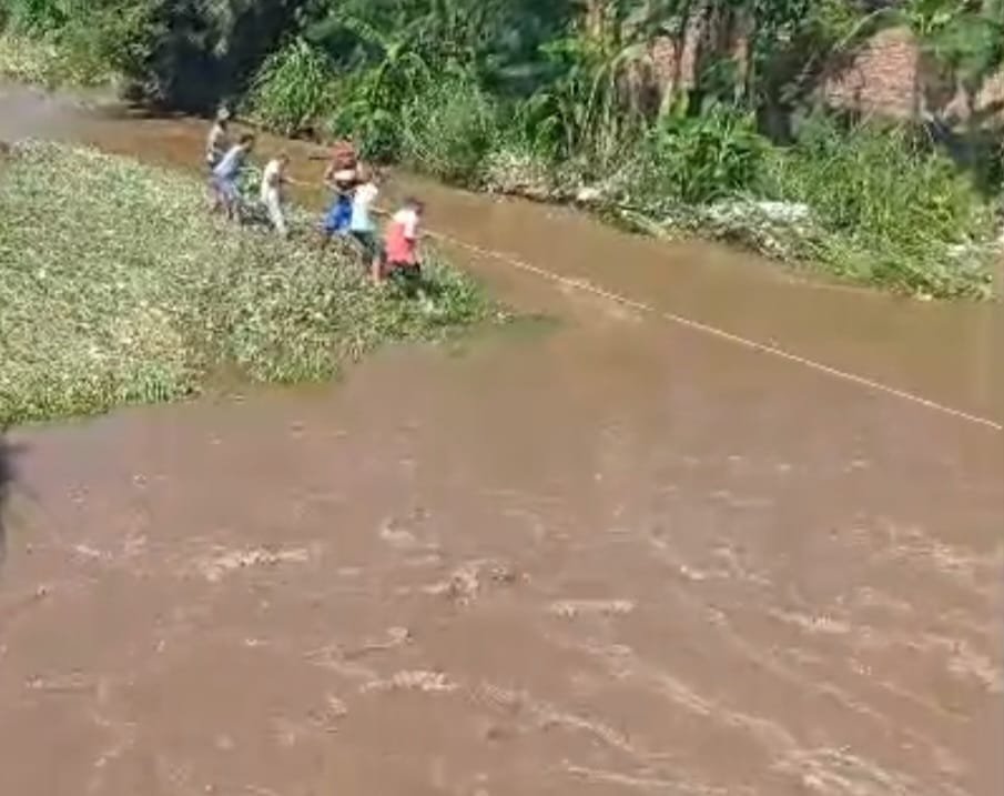 Petugas masih melakukan pencarian dengan menyisir sungai. Selain petugas warga sekitar juga turut membantu proses pencarian.