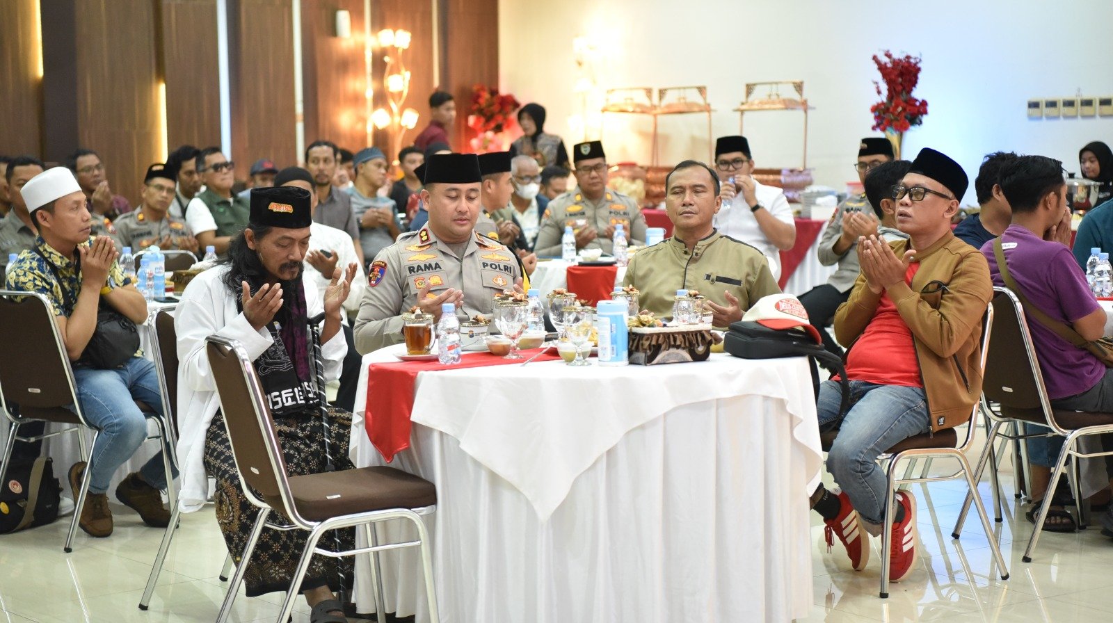 Menjelang waktu berbuka, para tamu mengikuti tausiyah dan doa bersama yang dipimpin KH Ainur Rofiq Toyyib. Dalam kultumnya, ia mengingatkan pentingnya menjaga ukhuwah dan mempererat kebersamaan antar elemen masyarakat agar tercipta situasi yang aman dan damai.