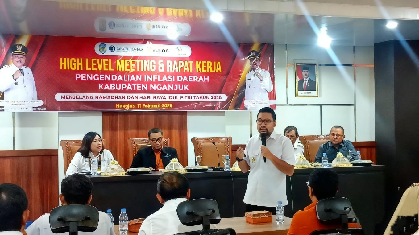 KabarBaik.co, Nganjuk – Pemkab Nganjuk menggelar High Level Meeting (HLM) dan Rapat Kerja Pengendalian Inflasi Daerah. Acara yang dihadiri Forkopimda, kepala OPD terkait, BPS Nganjuk, Perum BULOG Cabang Kediri, dan Bank Indonesia Kediri ini, bertujuan memperkuat sinergi menjaga stabilitas harga kebutuhan pokok menjelang Ramadan dan Idul Fitri 1447 H.