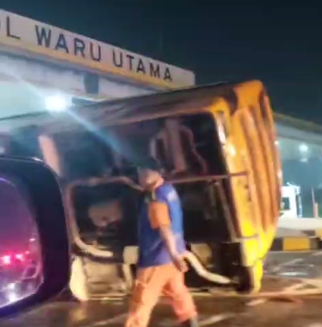 Bus yang terguling di Gate Tol Waru (Tangkapan layar)