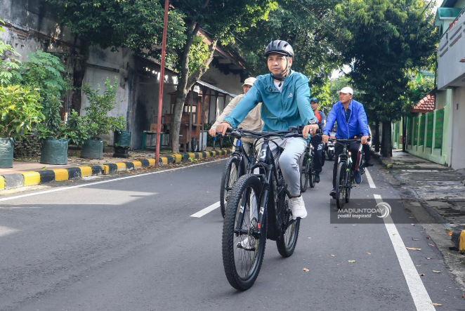 Plt Wali Kota Madiun F Bagus Panuntun turun ke lapangan guna mengecek sejumlah kesiapan sarana dan prasarana mengantisipasi ketidaktentuan cuaca tersebut. Bagus melakukan pengecekan sambil gowes, Kamis (23/4).