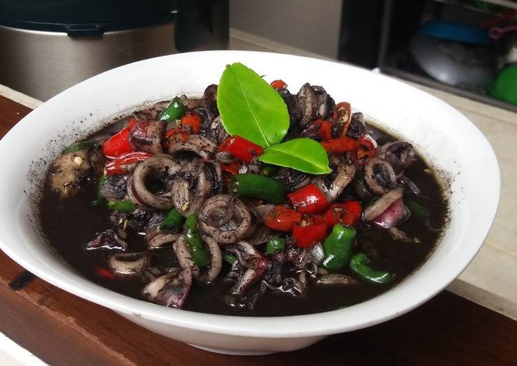- Cumi hitam pedas ini bisa disajikan dengan nasi putih hangat, sambal terasi, atau lalapan seperti mentimun dan kemangi.