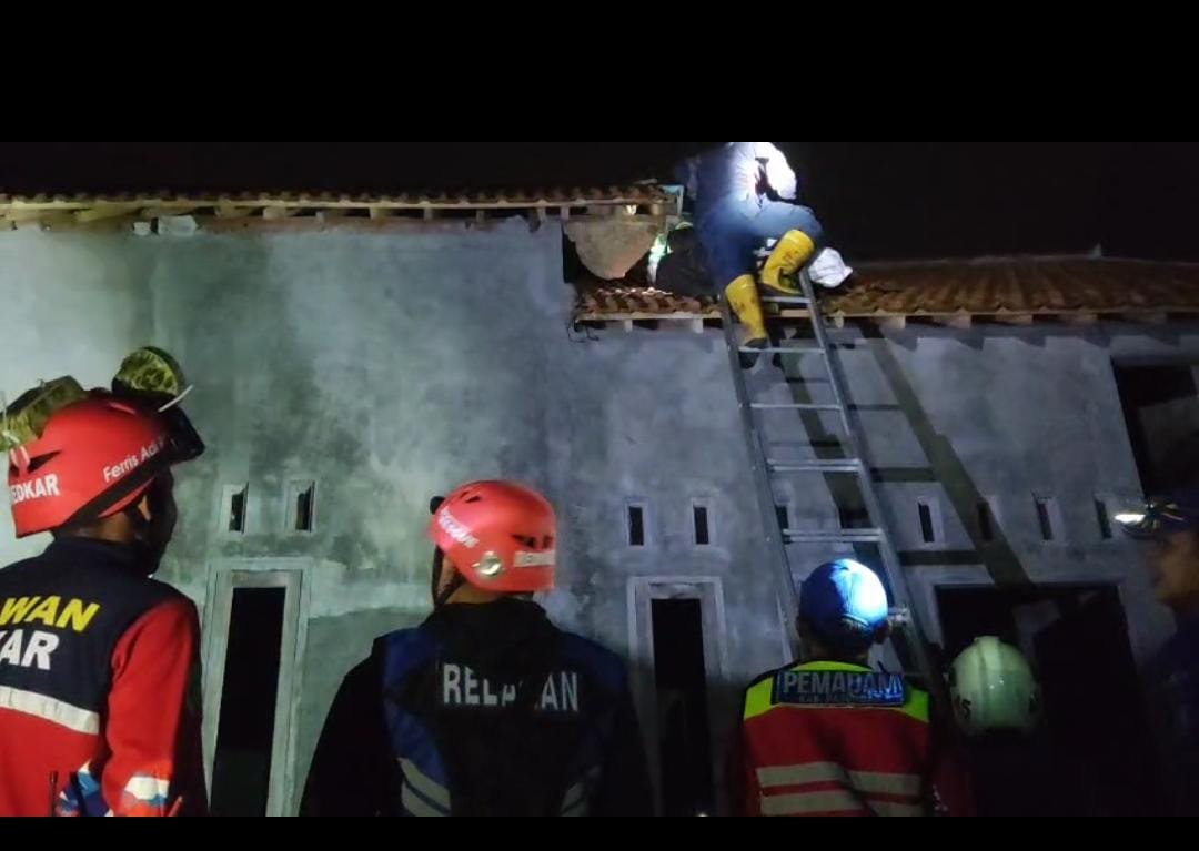 KabarBaik.co – Tim dari Dinas Pemadam Kebakaran (Damkar) Kabupaten Pasuruan mengevakuasi sarang tawon vespa di salah satu rumah warga di Dusun Wonogriyo, Desa Sumbersuko, Kecamatan Gempol, Jumat (16/1) malam. Sarang tawon vespa berdiameter 40 hingga 50 sentimeter tersebut menempel di atap rumah milik Kaspiono (56) sejak beberapa hari lalu.