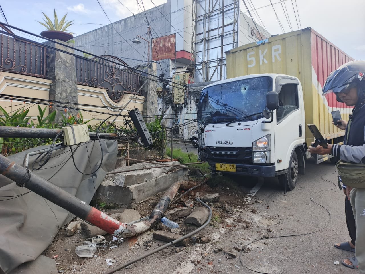 Diduga Sopir Mengantuk, Truk Box Tabrak Tiang Telkom di Genteng Banyuwangi