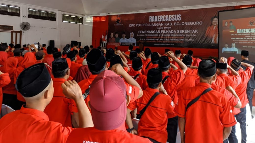 KabarBaik.co – PDIP Kabupaten Bojonegoro menggelar Rapat Kerja Cabang Khusus (Rakercabsus) dalam rangka pemenangan Pilkada 2024 di Hall Islamic Center, Jalan Panglima Polim, Bojonegoro, Minggu (22/9).