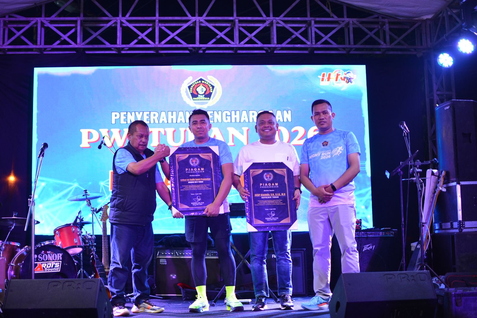 Penyerahan penghargaan dilakukan langsung oleh Ketua PWI Provinsi Jawa Timur, Lutfil Hakim, didampingi Ketua PWI Tuban, Suwandi, dalam acara puncak Hari Pers Nasional (HPN) PWI Tuban 2026 yang digelar meriah di GOR Rangga Jaya Anoraga, Sabtu (5/4) malam.