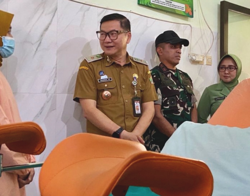 Kepala Dinas Kesehatan Kota Malang, Husnul Muarif, bersama petugas saat skrining kanker serviks. (Foto: P. Priyono)