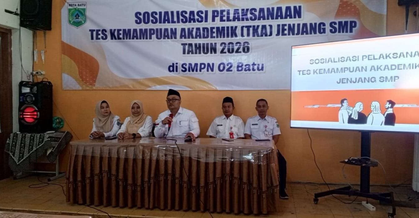 KabarBaik.co, Batu – Dinas Pendidikan (Disdik) Kota Batu menggelar sosialisasi Tes Kompetensi Akademik (TKA) Tahun 2026 bagi jenjang SMP negeri dan swasta se-Kota Batu. Kegiatan tersebut dilaksanakan di SMP Negeri 2 Kota Batu, Rabu (4/2).