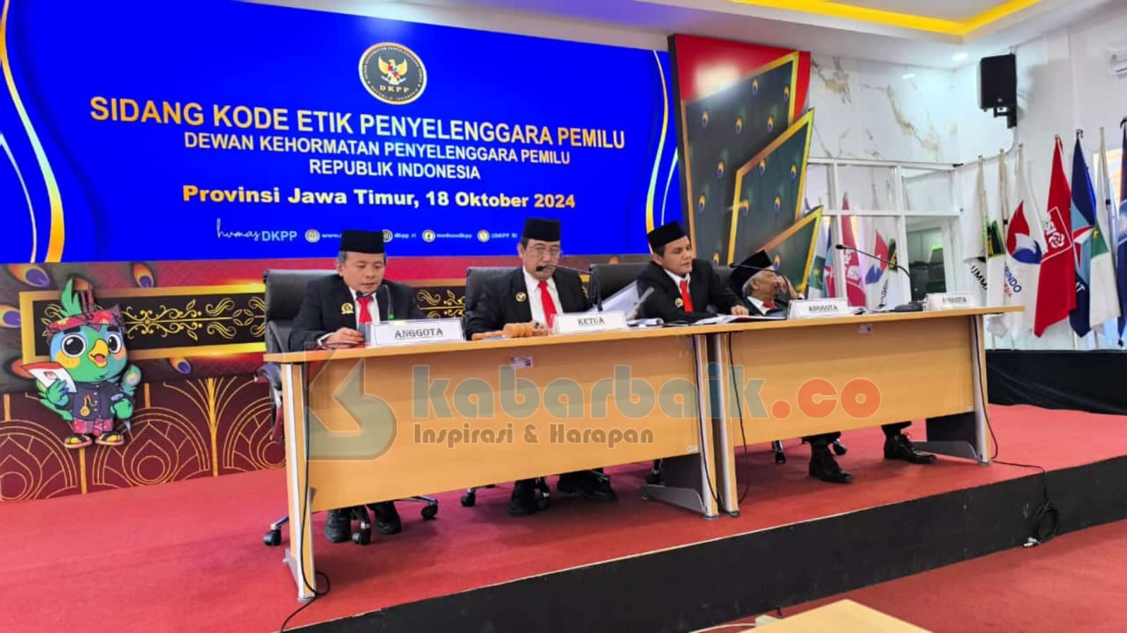 DKPP menggelar sidang pemeriksaan dugaan pelanggaran Kode Etik Penyelenggara Pemilu (KEPP) yang menyeret Rendy Oky Saputra anggota KPU Kabupaten Mojokerto dengan perkara Nomor: 254-P/L-DKPP/VII/2024 di Kantor KPU Provinsi Jawa Timur, Kota Surabaya, pada Jumat (18/10).