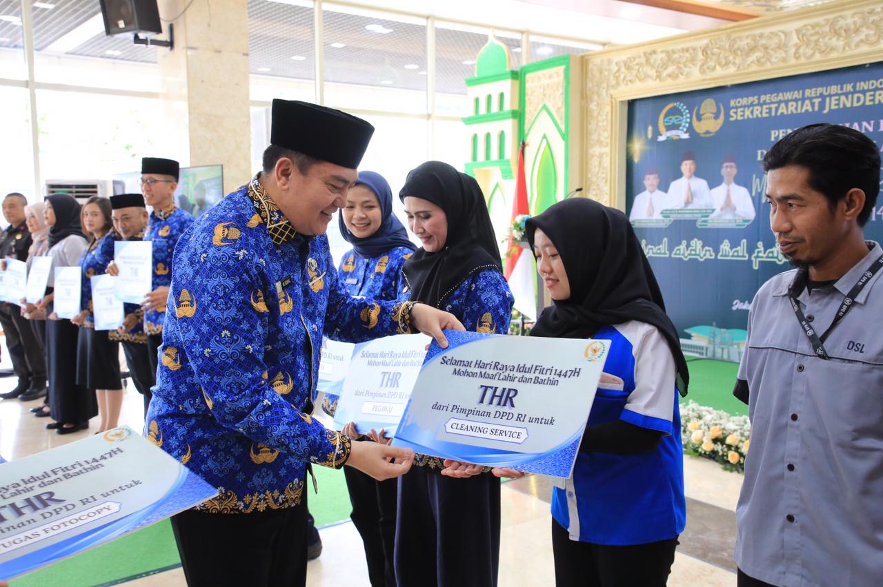 KORPRI Setjen DPD RI menyalurkan bingkisan Hari Raya dalam bentuk voucher belanja kepada pegawai dan staf pendukung. Total bingkisan yang disalurkan sebanyak 1.626 voucher, dengan rincian 1.408 voucher diberikan kepada pejabat dan pegawai ASN, CPNS, serta Pegawai Pemerintah Non Pegawai Negeri (PPNPN).