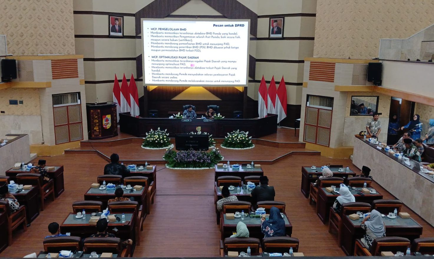 Rakor sosialisasi program pemberantasan korupsi terintegrasi, di ruang Paripurna DPRD Jember. (Foto: Dwi Kuntarto Aji)