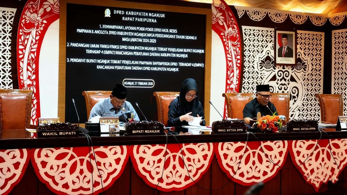 “Penyusunan Raperda ini merupakan langkah nyata dalam menjawab kebutuhan publik secara komprehensif,” ujar Wakil Ketua DPRD Nganjuk Jianto yang memimpin jalannya sidang paripurna, Sabtu (28/2)