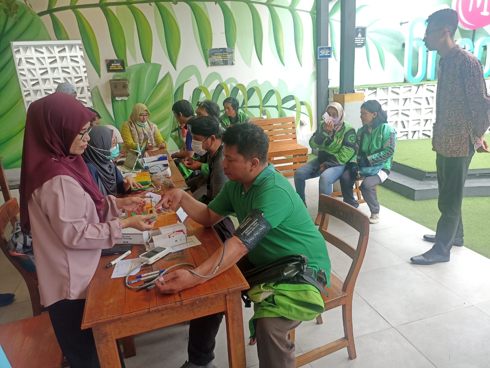 Kegiatan ini menyasar pengemudi ojol dengan target 100 orang, namun terbuka pula untuk masyarakat umum, termasuk pekerja restoran dan pengunjung. “Bahkan jika lebih dari 100 orang, kami tetap akan melayani sampai stoknya habis,” ujar Kepala Puskesmas Sukomulyo dr. Inna.