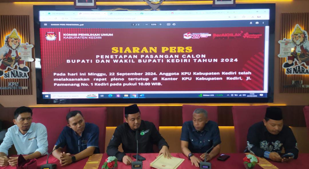 KabarBaik.co – Dua pasangan calon (Paslon) bupati dan wakil bupati Bediri Hanindhito Himawan Pramana-Dewi Mariya Ulfa dan Deny Widyanarko-Mudawamah ditetapkan oleh Komisi Pemilihan Umum (KPU) Kabupaten Kediri, Minggu (22/9).