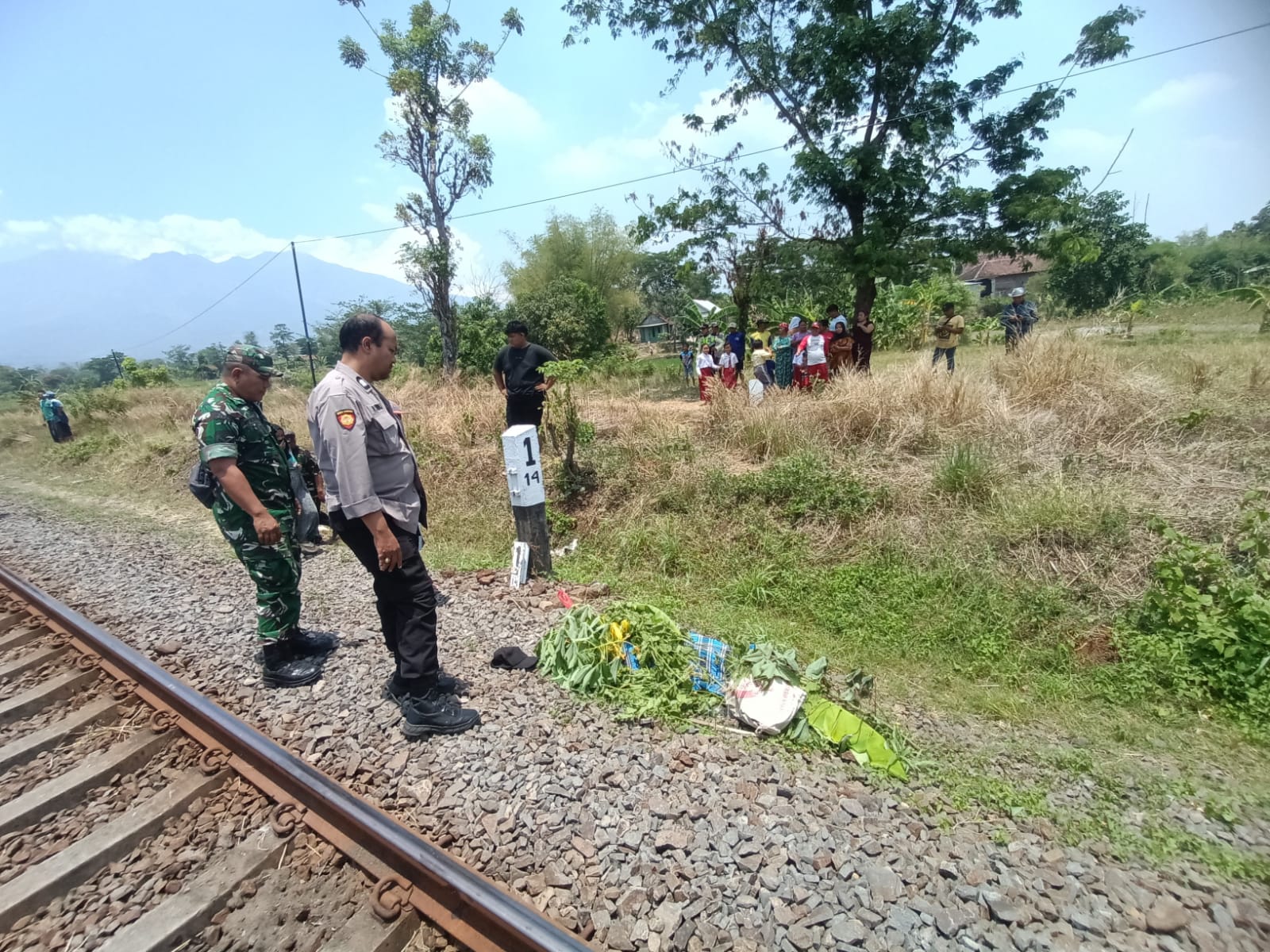 “Tadi korban itu duduk di bantalan rel KA, waktu kereta melintas sudah di bunyikan klaksonnya tapi tetep tidak dengar,” ucap Wawan warga sekitar.