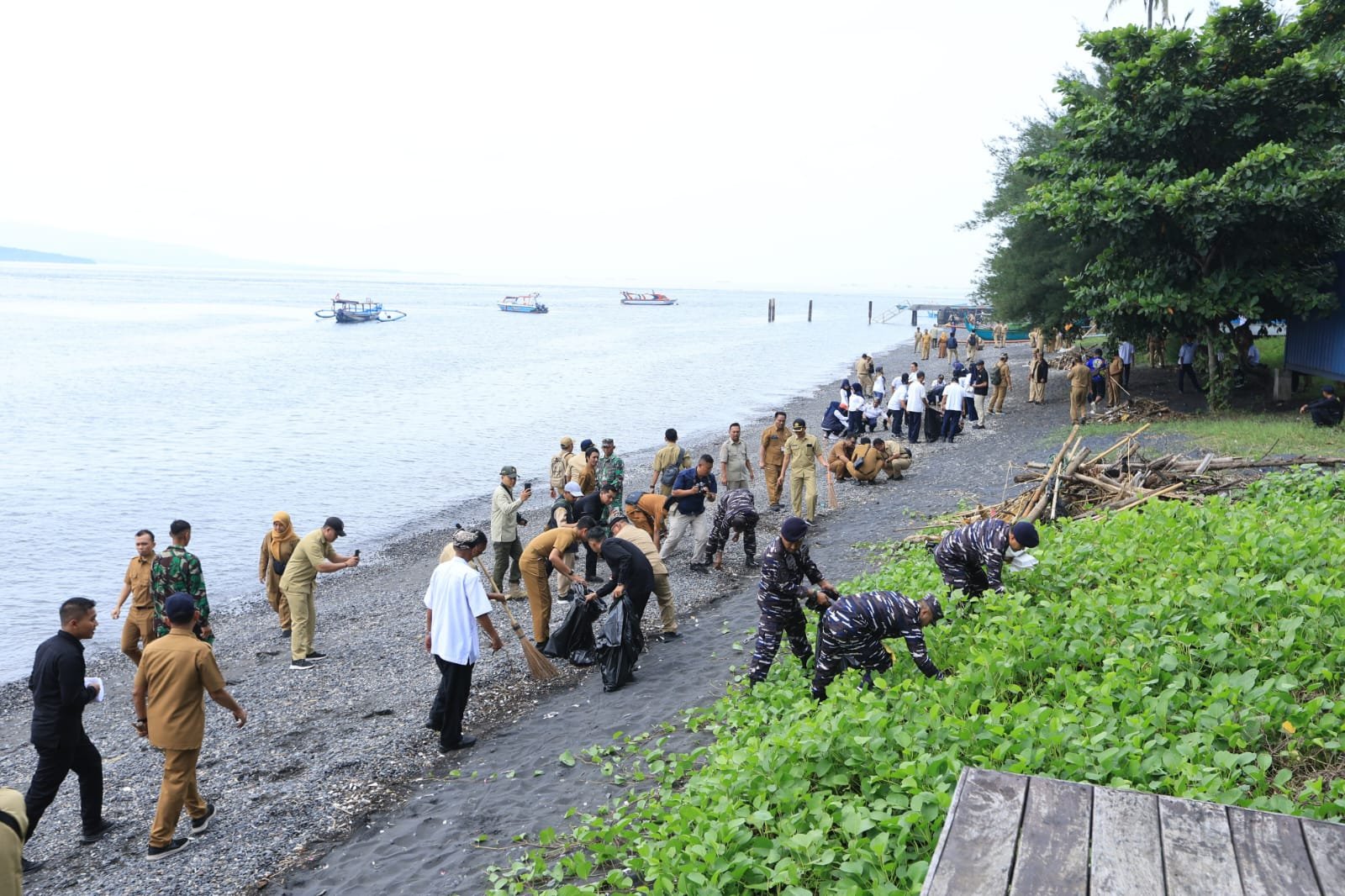 Dikomando Ipuk, para peserta deklarasi tidak hanya membacakan komitmen bersama, ribuan masyarakay tersebut langsung turun ke lapangan dengan membersihkan sampah di sepanjang area pantai.