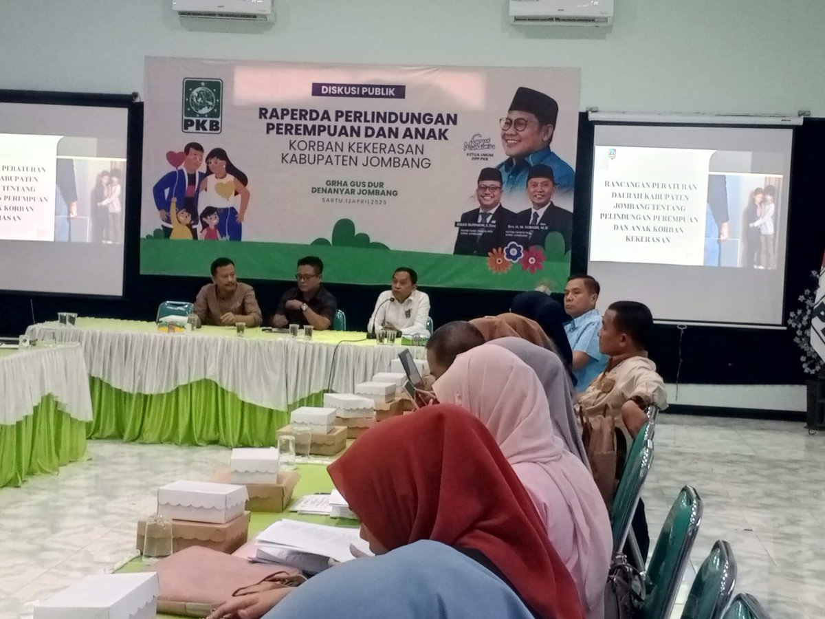Bertempat di Graha Gus Dur DPC PKB Jombang, mereka menggelar Diskusi Publik untuk membedah Rancangan Peraturan Daerah (Raperda) tentang Perlindungan Perempuan dan Anak Korban Kekerasan Kabupaten Jombang.