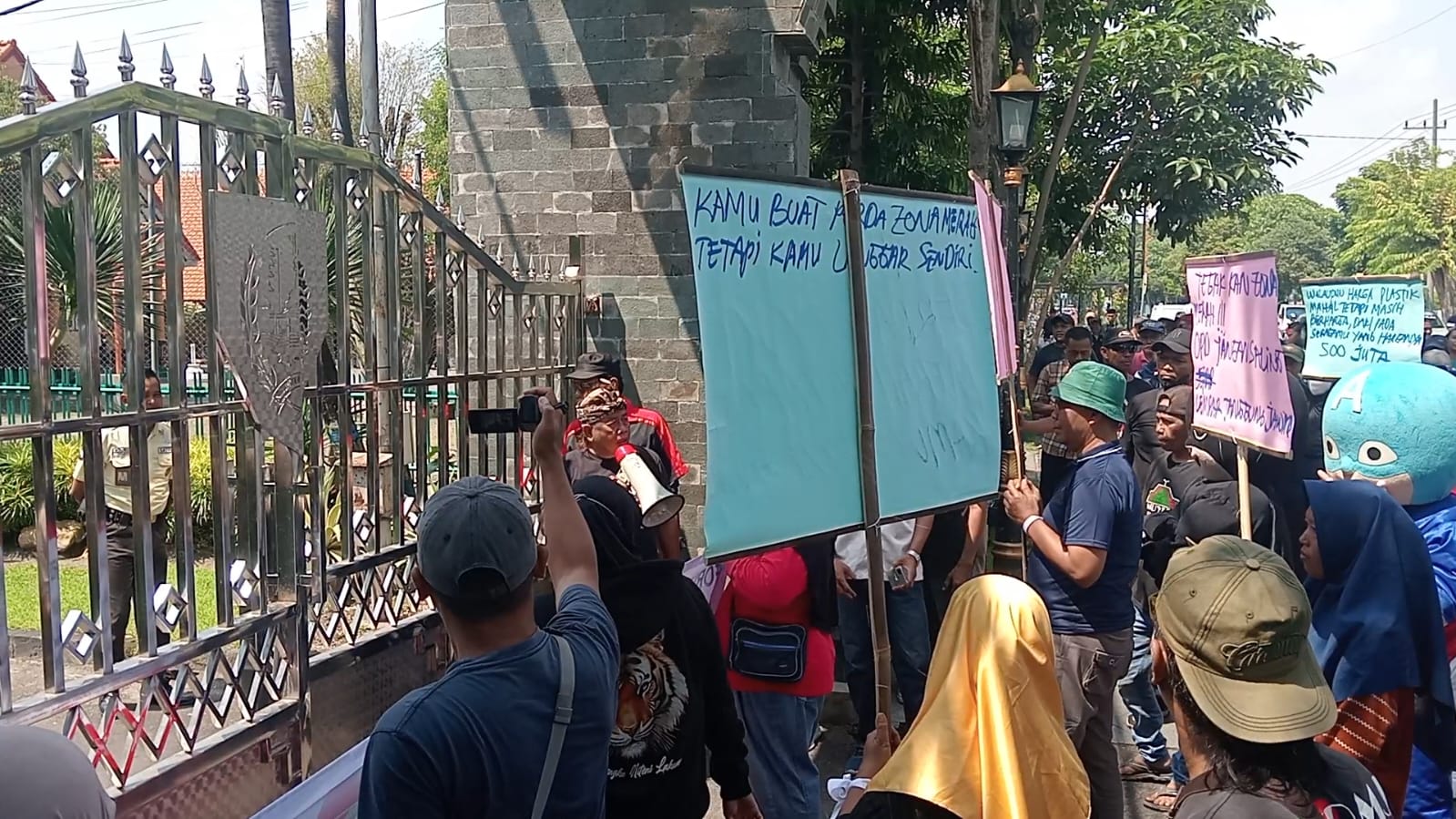 Aksi dimulai dengan long march dari Taman Kebon Rojo menuju kantor Pemkab. Massa, yang sebagian besar merupakan pedagang di Sentra Wisata Kuliner Jalan KH Ahmad Dahlan, membawa spanduk dan menyuarakan tuntutan melalui pengeras suara.