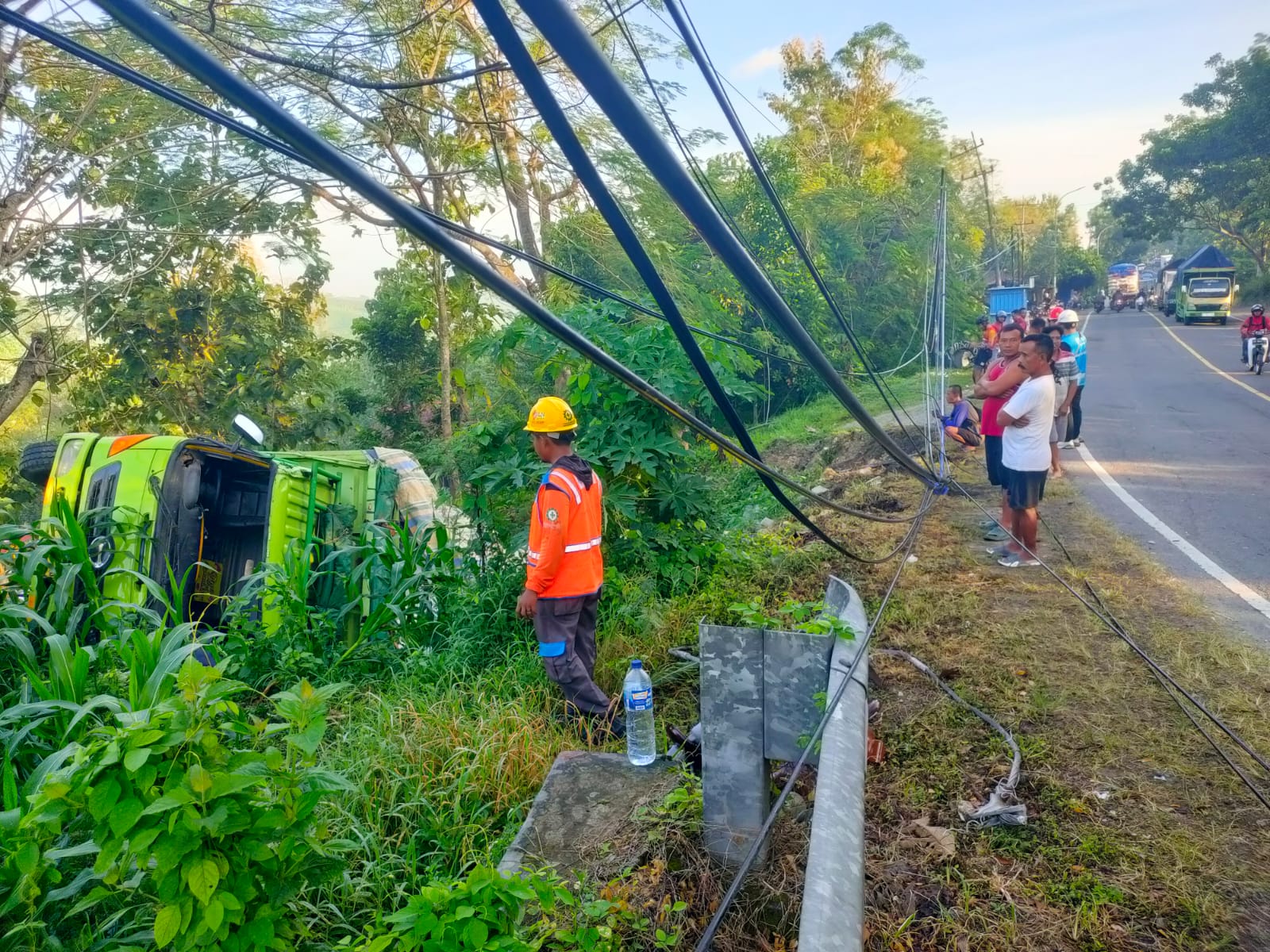 Benturan tersebut menyebabkan tiang listrik roboh dan kabel jaringan listrik putus di lokasi kejadian. Meski demikian, Septian memastikan tidak ada korban jiwa maupun korban luka dalam peristiwa tersebut. Pengemudi truk juga dilaporkan selamat. “Korban nihil, hanya kerugian material berupa tiang listrik roboh dan kabel jaringan putus,” tambahnya.