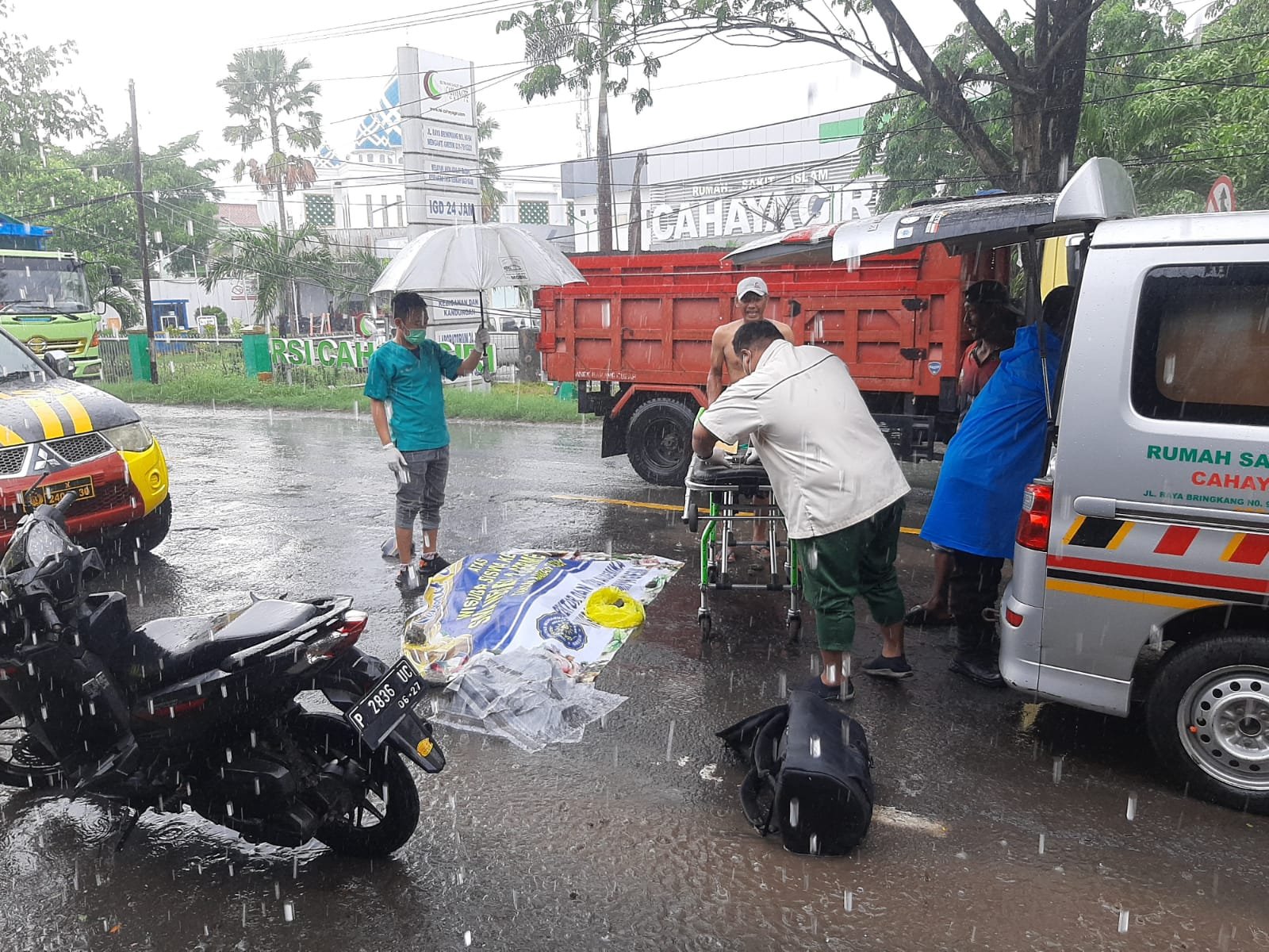 KabarBaik.co – Guyuran hujan mengiringi kecelakaan maut di Jalan Raya Desa Bringkang, Kecamatan Menganti, Kabupaten Gresik, Selasa (10/12). Seorang pengendara sepeda motor asal Kabupaten Banyuwangi meninggal dunia usai terlindas truk tronton.