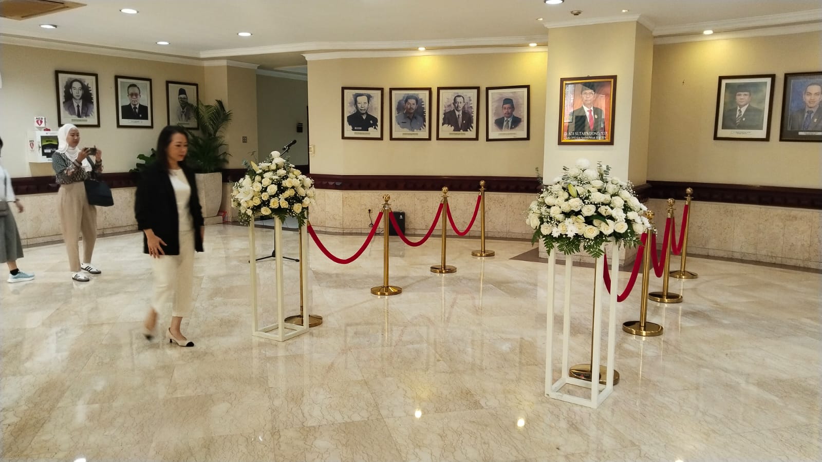 Lobi gedung DPRD Surabaya yang akan menjadi tempat disemayamkannya jenazah sebelum diberangkatkan ke peristirahatan terakhir (Sugiantoro)