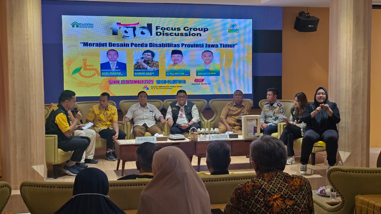 Kondisi tersebut mendorong Partai Golkar Jawa Timur menggelar Forum Group Discussion (FGD) bertema “Merajut Desain Peraturan Daerah Disabilitas Provinsi Jawa Timur”, sebagai langkah awal merumuskan regulasi baru yang lebih inklusif, komprehensif, dan berpihak pada kebutuhan riil difabel.