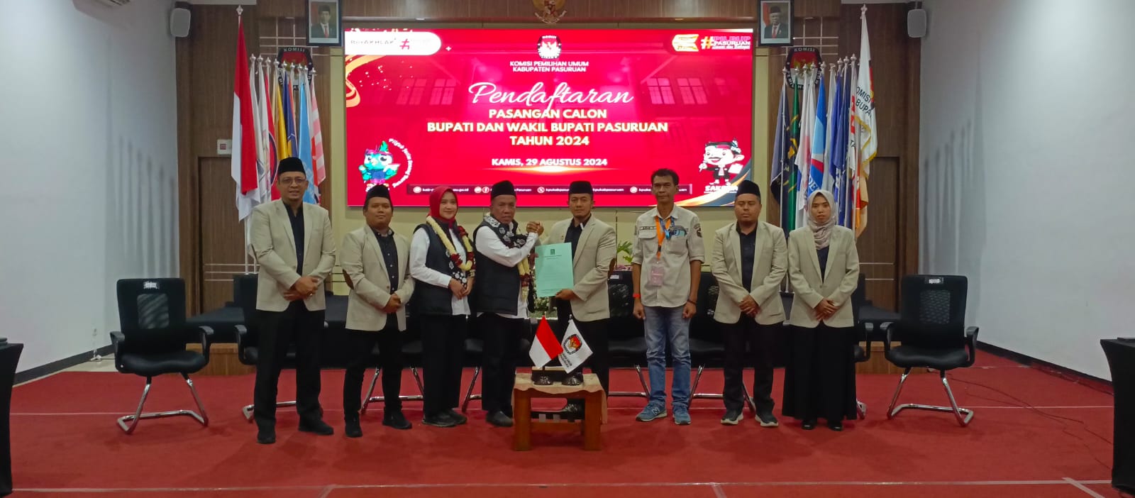 Pasangan Gus Mujib-Ning Wardah menyerahkan berkas pendaftaran ke KPU Kabupaten Pasuruan, Kamis (29/8). (Foto: Zia Ulhaq)