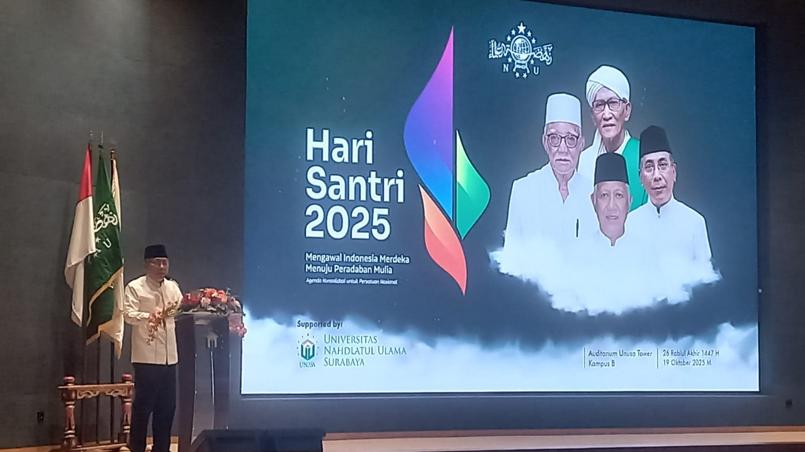“Hari Santri ke-10 tahun ini mendapat kado pahit dari tayangan televisi nasional. Tapi ada hikmah besar, yaitu pentingnya menjaga persatuan dan kemerdekaan,” kata Gus Yahya dalam Kick Off Hari Santri Nasional (HSN) 2025 di Universitas NU Surabaya (Unusa), Minggu (19/10).