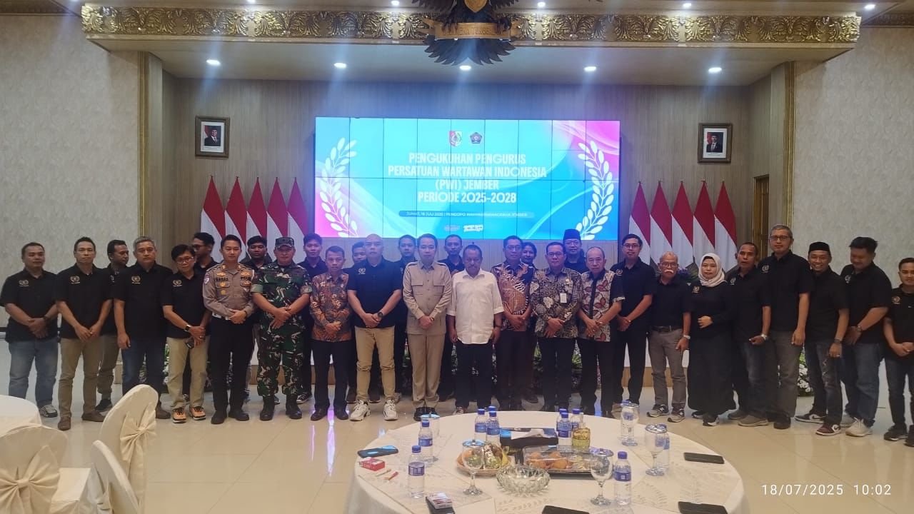 KabarBaik.co – Pengukuhan pengurus Persatuan Wartawan Indonesia (PWI) Kabupaten Jember telah berlangsung di Pendopo Wahyawibawagraha pada Jumat (18/7).