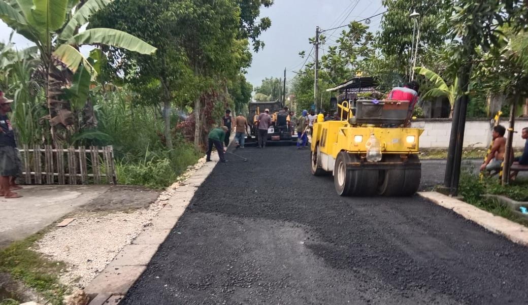 Pekerjaan pembangunan jalan aspal di desa Sukowati, Kapas Bojonegoro (Shohibul Umam)