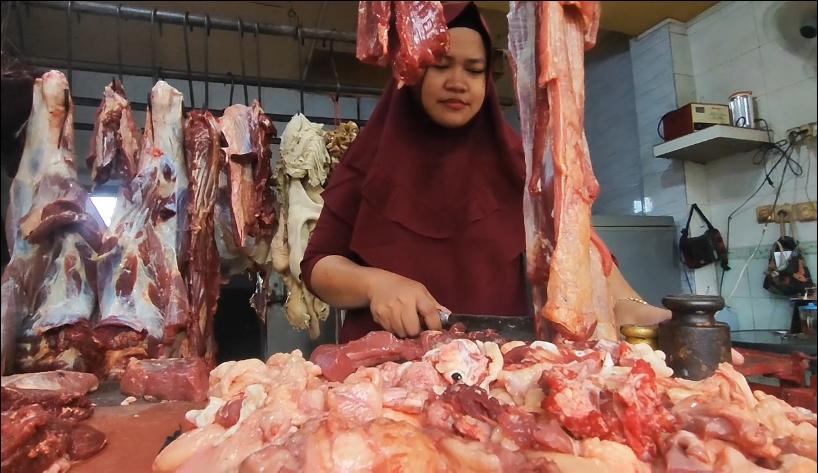 KabarBaik,co, Pasuruan – Harga daging sapi di pasar tradisional Kota Pasuruan melonjak tajam seiring naiknya harga sapi lokal. Harganya bahkan tembus Rp 140 ribu rupiah perkilogram yang membuat aktivitas jual beli di pasar tradisional mengalami penurunan penjualan.