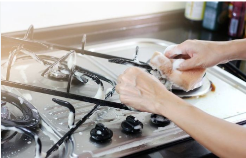 - Gosok dengan hati-hati agar permukaan bodi kompor tidak tergores.