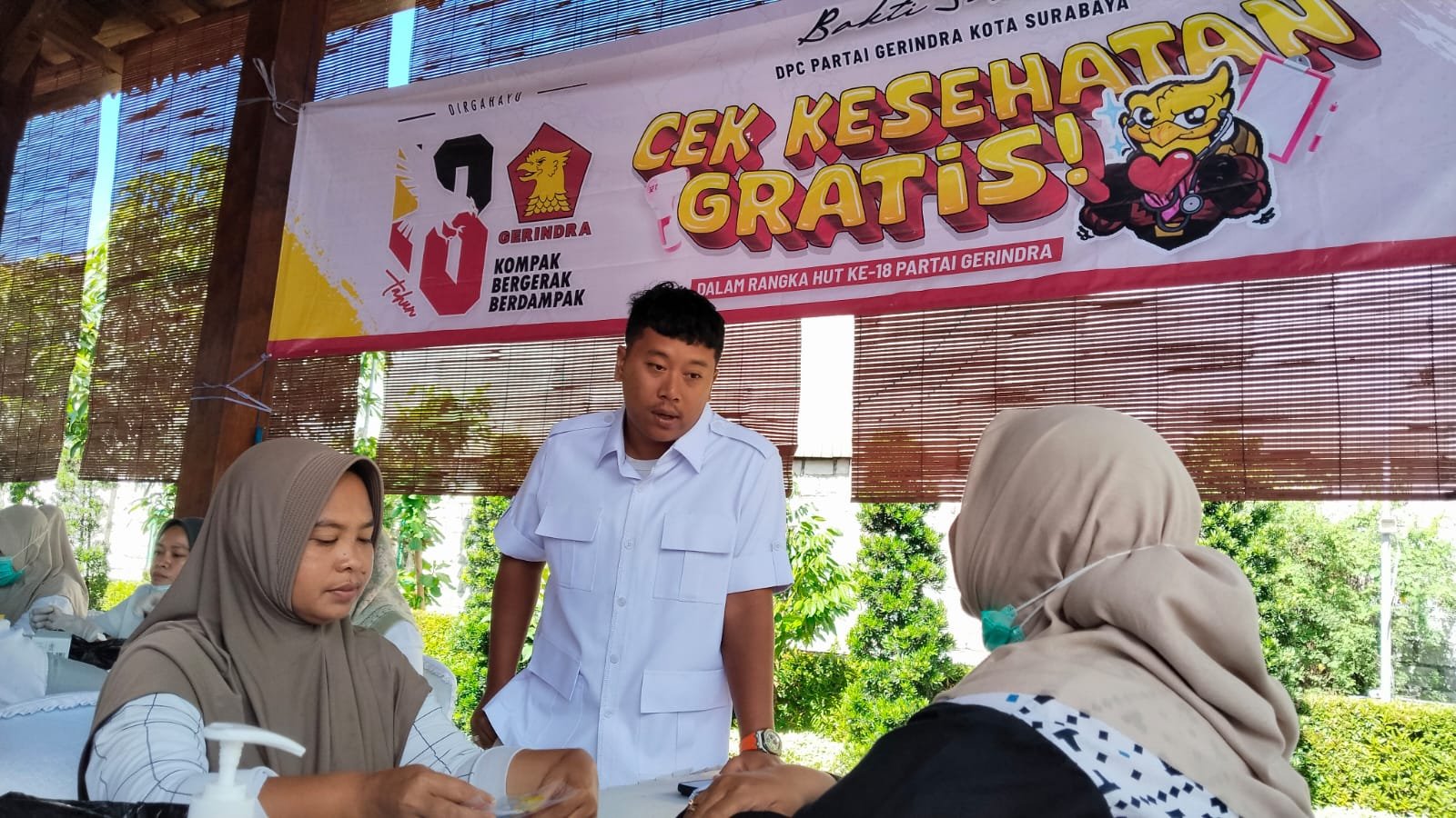 KabarBaik.co, Surabaya– Memperingati HUT Partai Gerindra, DPC Gerindra Surabaya di bawah kepemimpinan Cahyo Harjo Prakoso menginstruksikan seluruh kader untuk turun langsung ke masyarakat. Salah satu aksi nyata dilakukan oleh Wakil Ketua Komisi C DPRD Kota Surabaya, Alif Iman Waluyo, dengan menggelar bakti sosial pemeriksaan kesehatan gratis di Balas Klumprik, Selasa, (3/2).