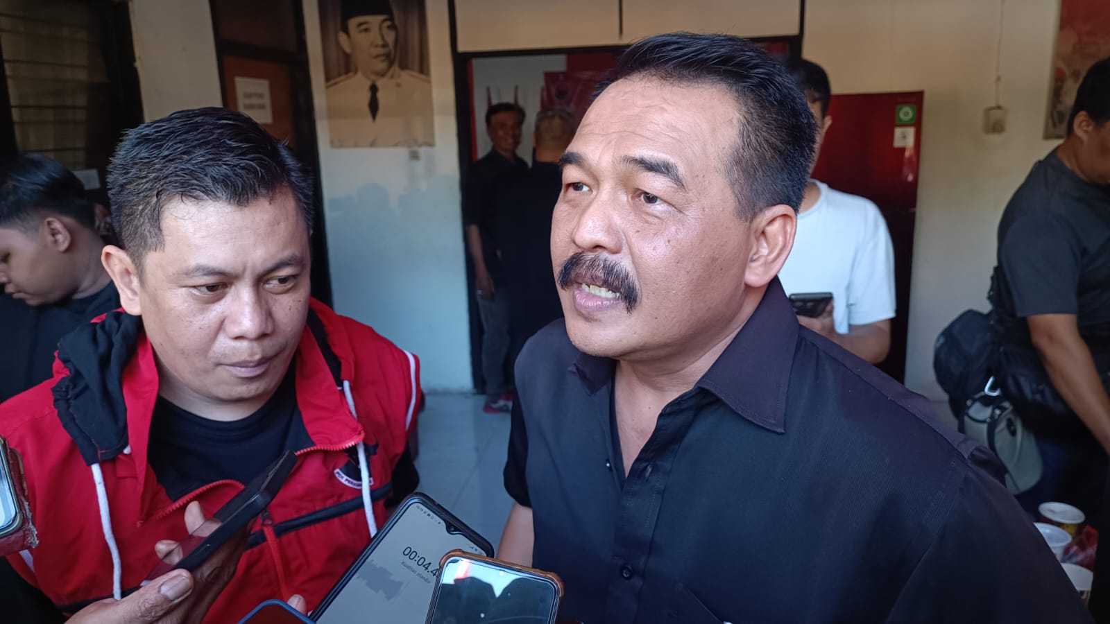 Ketua DPC PDIP, Sumi Harsono (kanan) saat berbicara tentang Bakal Calon yang diusung.