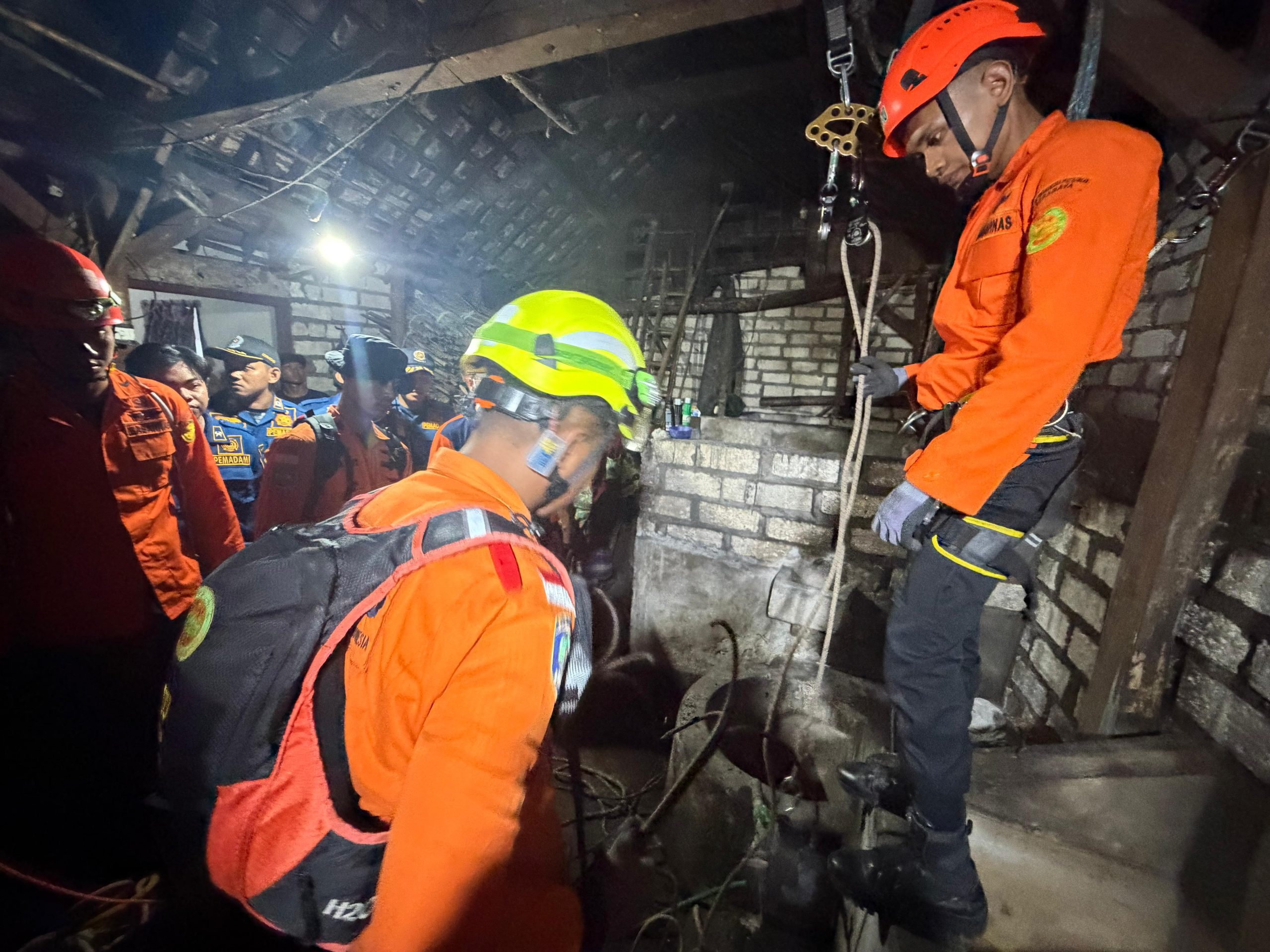 Proses evakuasi berjalan dramatis. Petugas harus menggunakan tali dan turun ke sumur hingga bisa membawa jasad korban ke permukaan.(*)