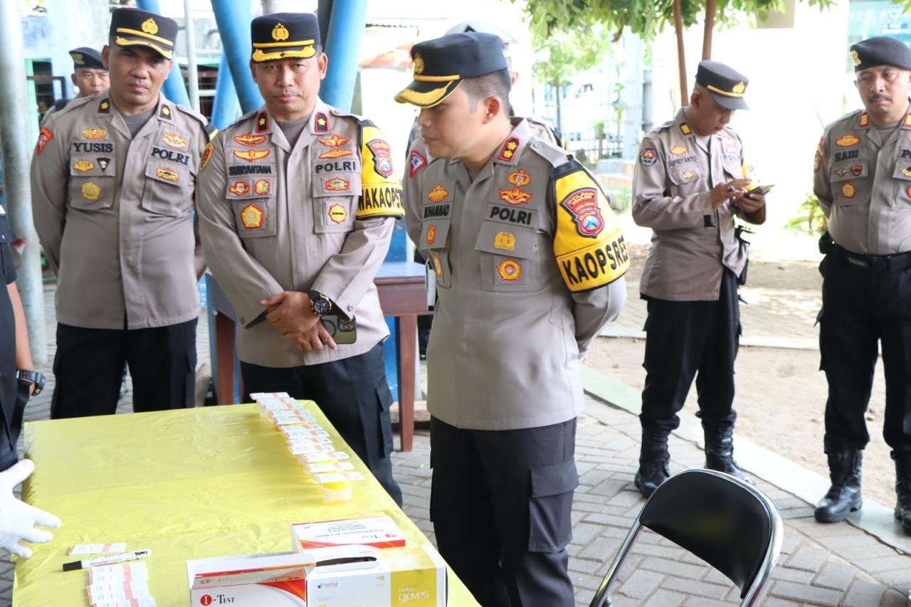 Kapolres Nagnjuk memantau langsung tes urine para sopir angkutan umum.