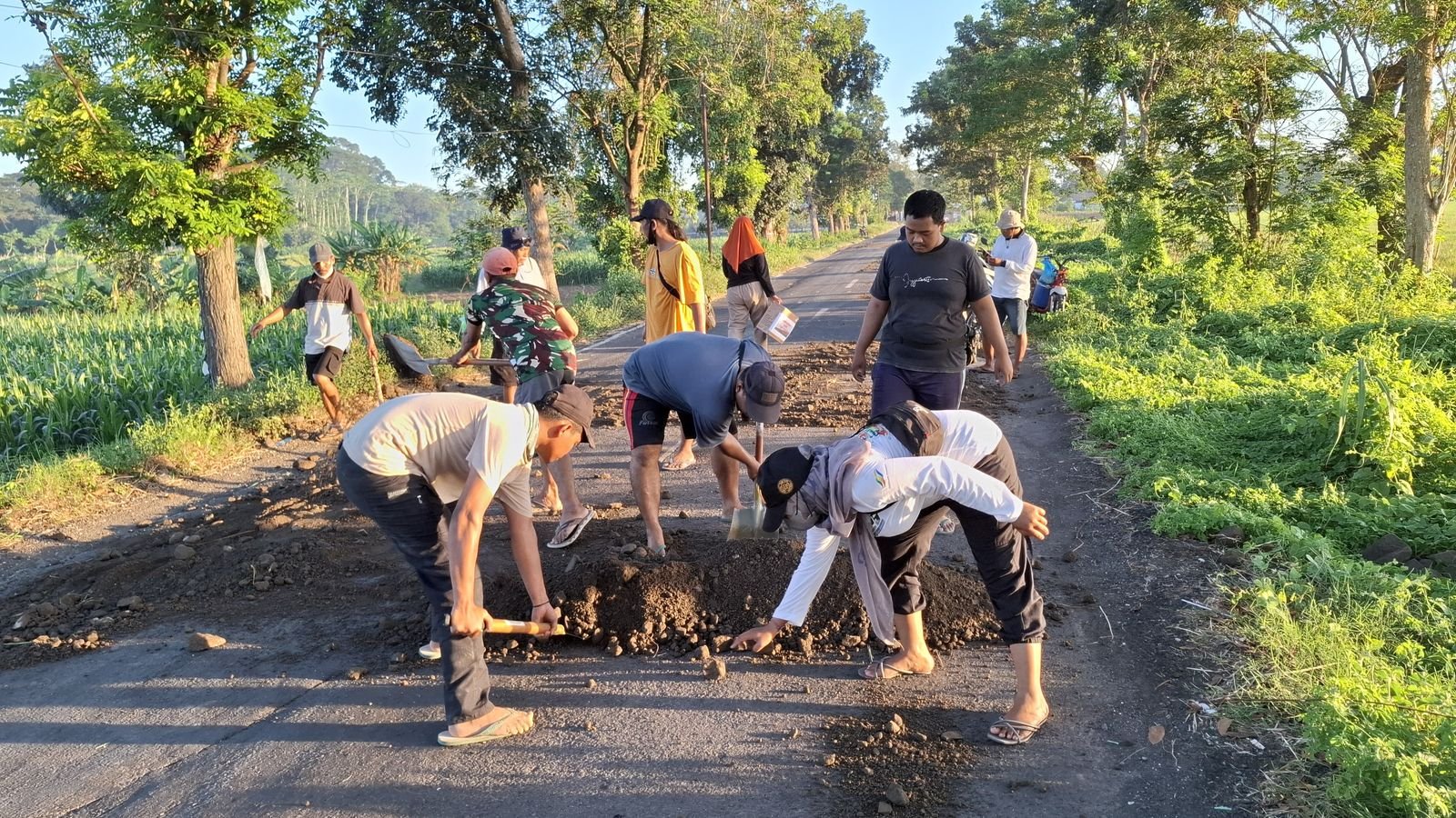 “Kami tidak ingin masyarakat menjadi korban jalan rusak ini. Meskipun kami menggunakan bahan seadanya. Kami juga heran padahal ini baru dibetulkan pada masa bupati yang dahulu tapi sudah rusak lagi,” katanya, Selasa (29/4).