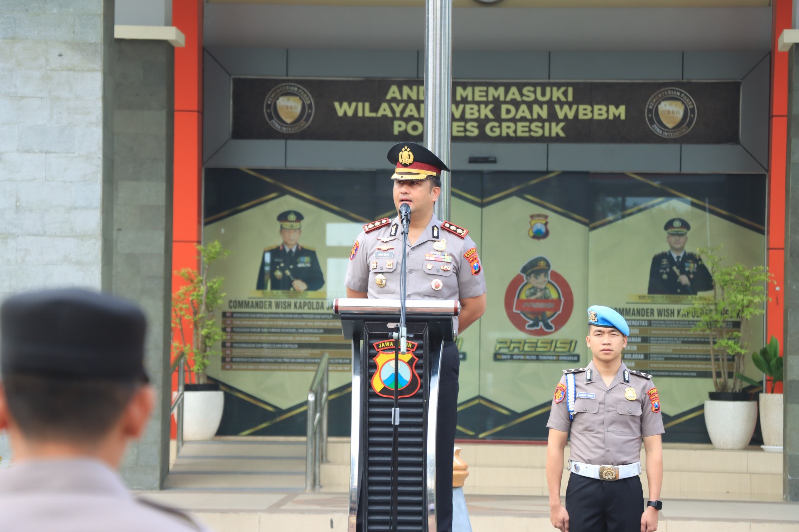 Kapolres Gresik AKBP Ramadhan Nasution memimpin apel pagi.
