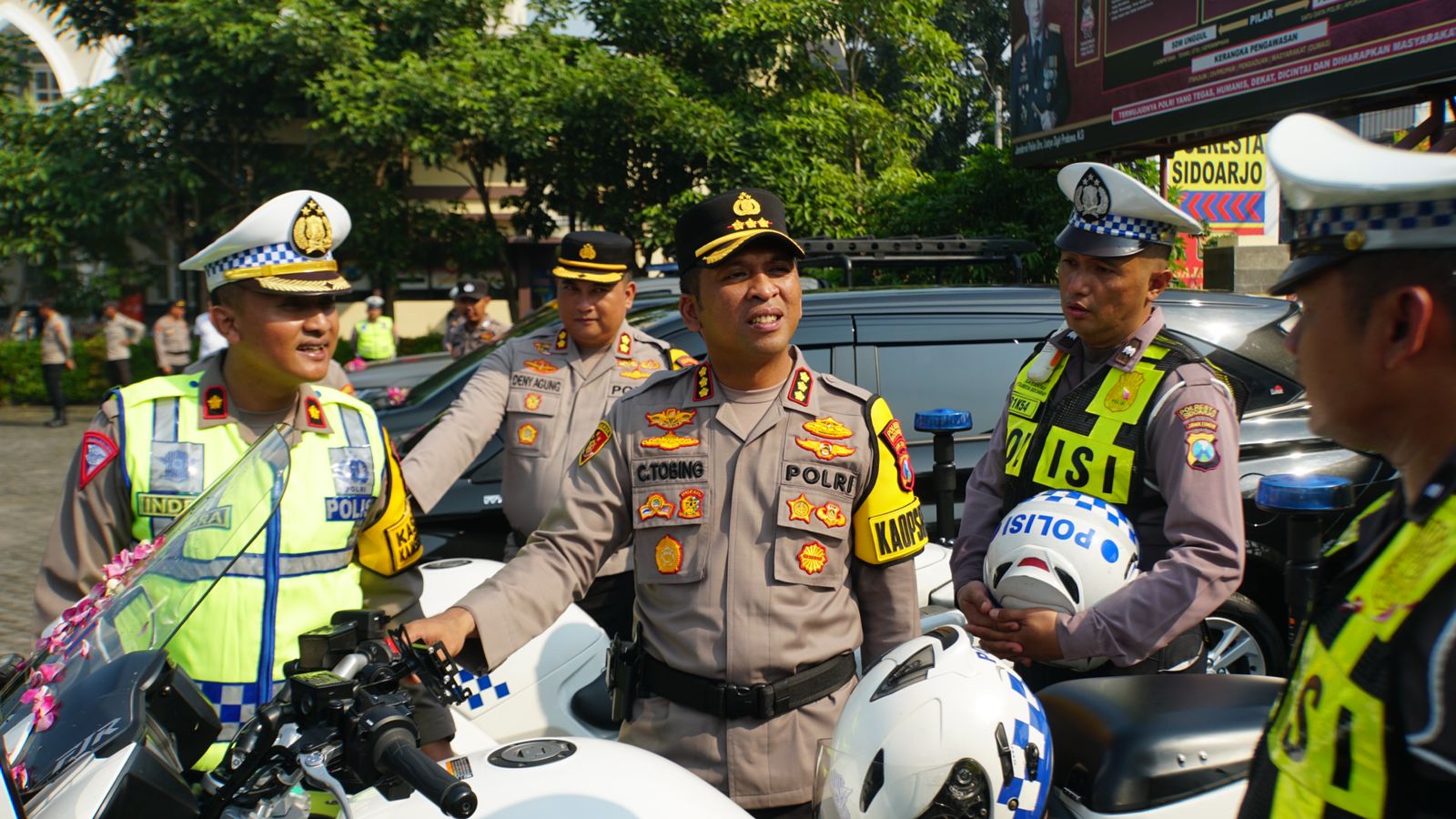 Kapolresta Sidoarjo Kombes Pol Christian Tobing saat menyerahkan kendaraan secara simbolis.
